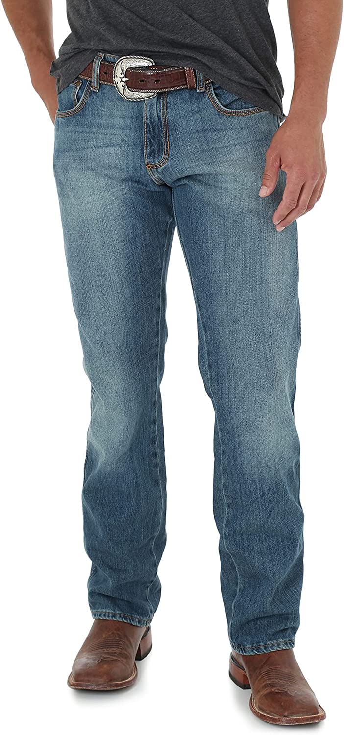 Wrangler Men's Retro Slim Straight Jean. This Retro jean was designed with style in mind. An everyday staple built with a slim fit, this Retro jean is a classic that never goes out of style. Great for a night on the town or out to dinner, this jean keeps you looking buttoned-up no matter the occasion.