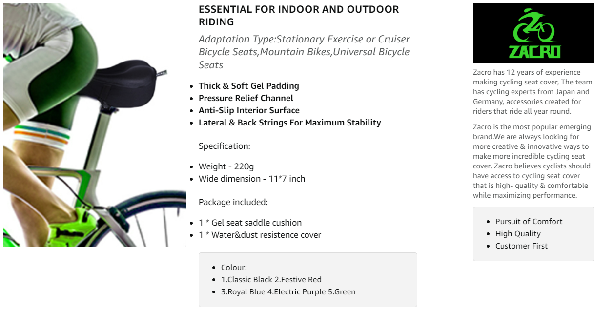 Zacro is a fast-growing brand focusing on Bike Seat Cover and Bike Helmet. Before the establishment of Zacro, we have been deeply engaged in cycling research and development for many years. Make and supply of safety products that protect people and facility infrastructures. We innovate and offer high-quality Cycling Equipment products in the global market to provide comfort and meet needs.