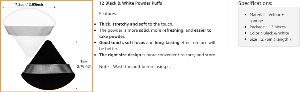 6 Black+6 White Triangle Powder Puff-Softness that you fall in love with once