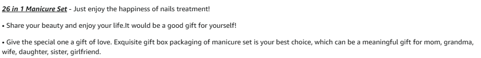 ?【26 in 1 Manicure Set】 Professional manicure kit includes 26 pieces of tools for facial, nail, and pedicure care which can meet all of you needs. Just enjoy the happiness of nails treatment!