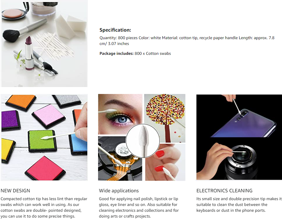 Recycle paper handle: The swabs handle are made of recycle paper, reduce waste of energy.