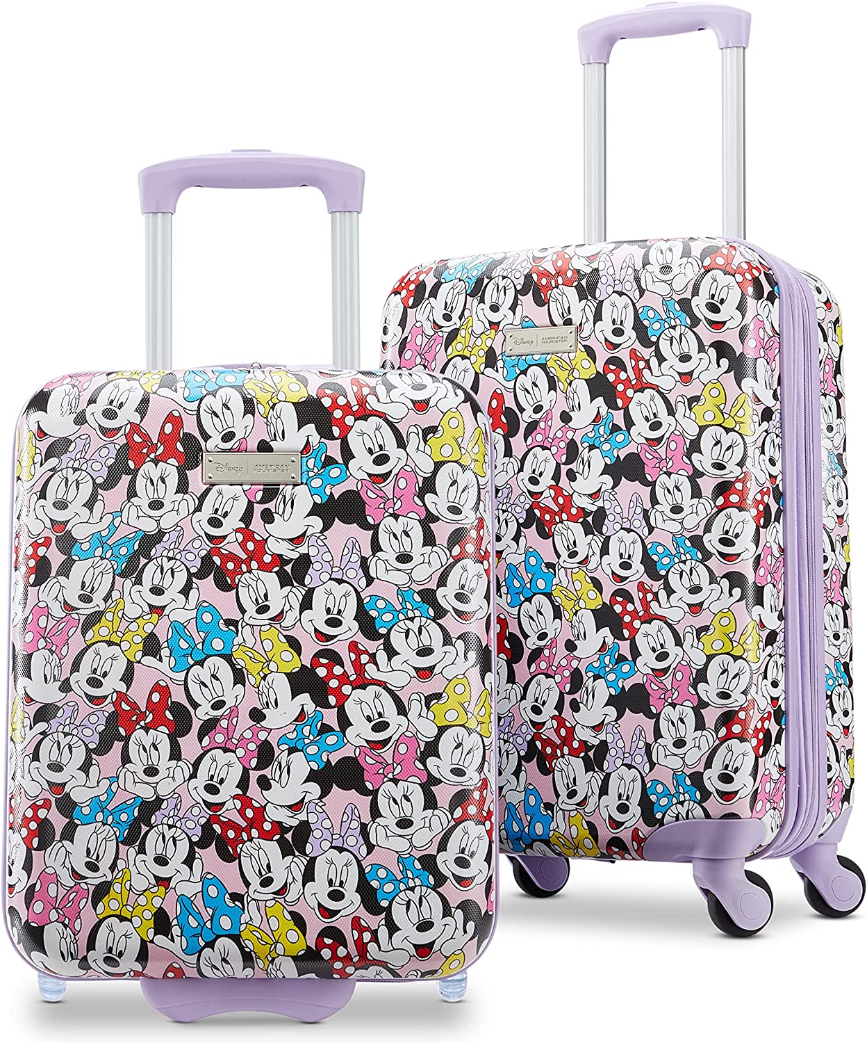 Show your love for your favorite Disney character with this hardside upright travel case from AMERICAN TOURISTER. The AMERICAN TOURISTER hardside is made from lightweight and durable ABS material and features a sleek hardside design with side-mounted skate wheels, a mono tube pull handle, and a top grab handle for easy lifting. The interior is fully lined and detailed with crisscross tie-down straps to hold clothing in place and a zip around divider that creates two separate packing compartments. This case is perfect for boys and girls on the go. Pack more fun with this Disney luggage!