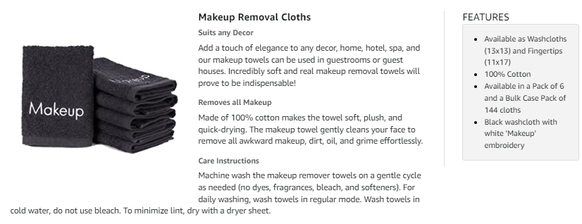 BLACK MAKEUP WASHCLOTHS – Don’t ruin your white facial towels with makeup stains. Our custom-made makeup towels won’t look shabby or dirty, even after multiple uses, and are a more sustainable choice than makeup remover wipes.
