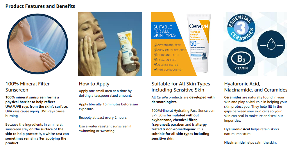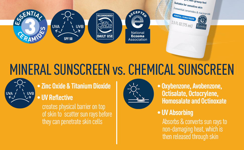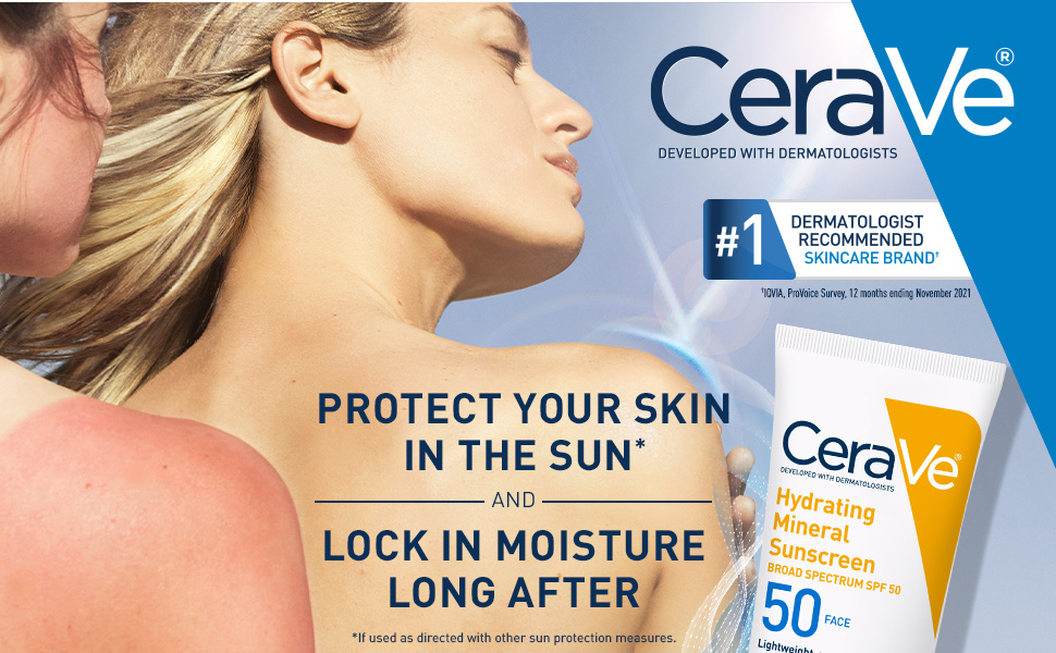 Developed with dermatologists, CeraVe Hydrating Sunscreen Face Lotion provides broad-spectrum protection with 100% mineral sunscreen that reflect the sun’s damaging UVA/UVB rays. This lightweight formula provides all day hydration with three essential ceramides that help restore the skin’s natural barrier and lock in moisture long after.