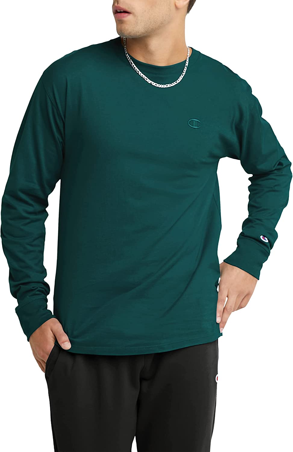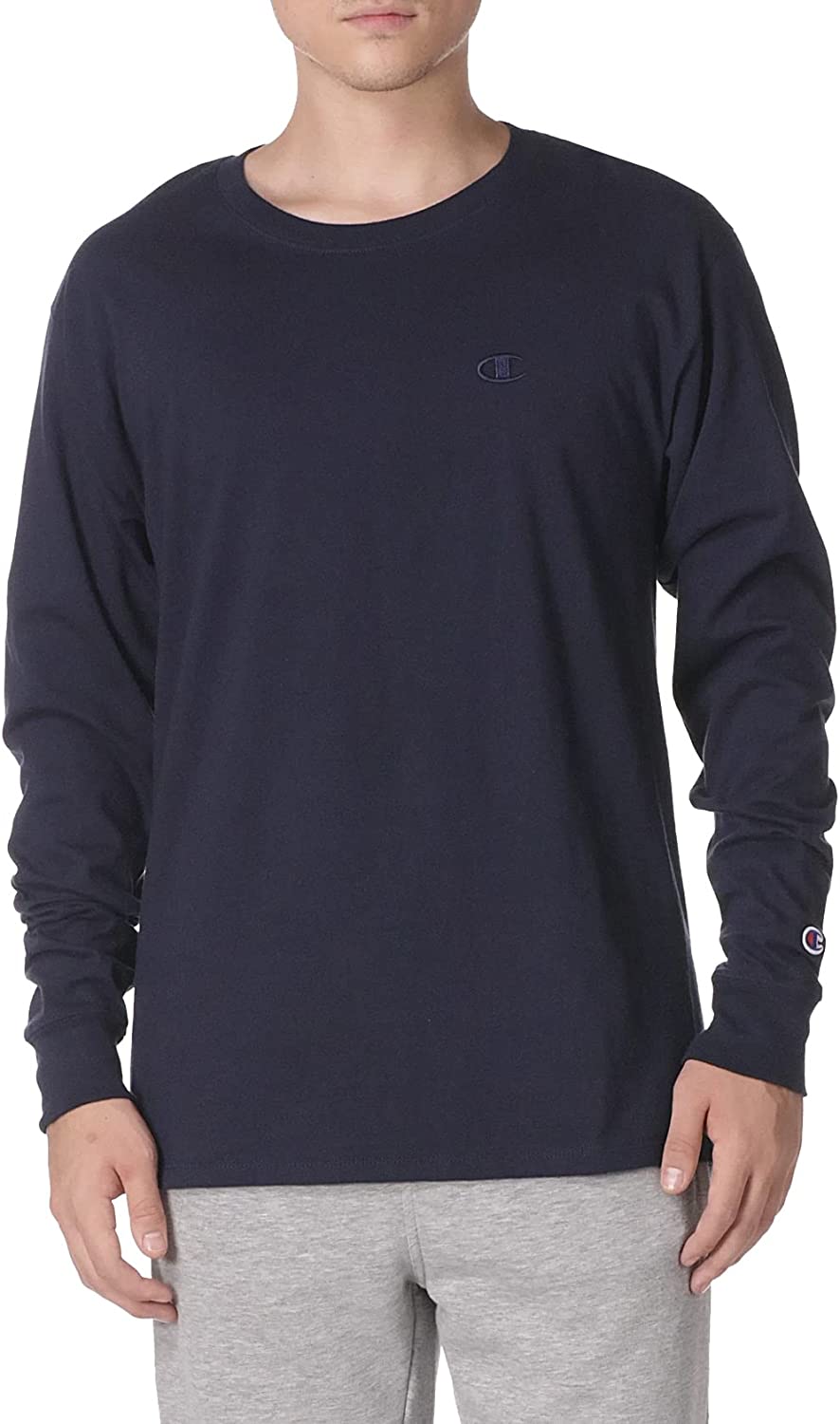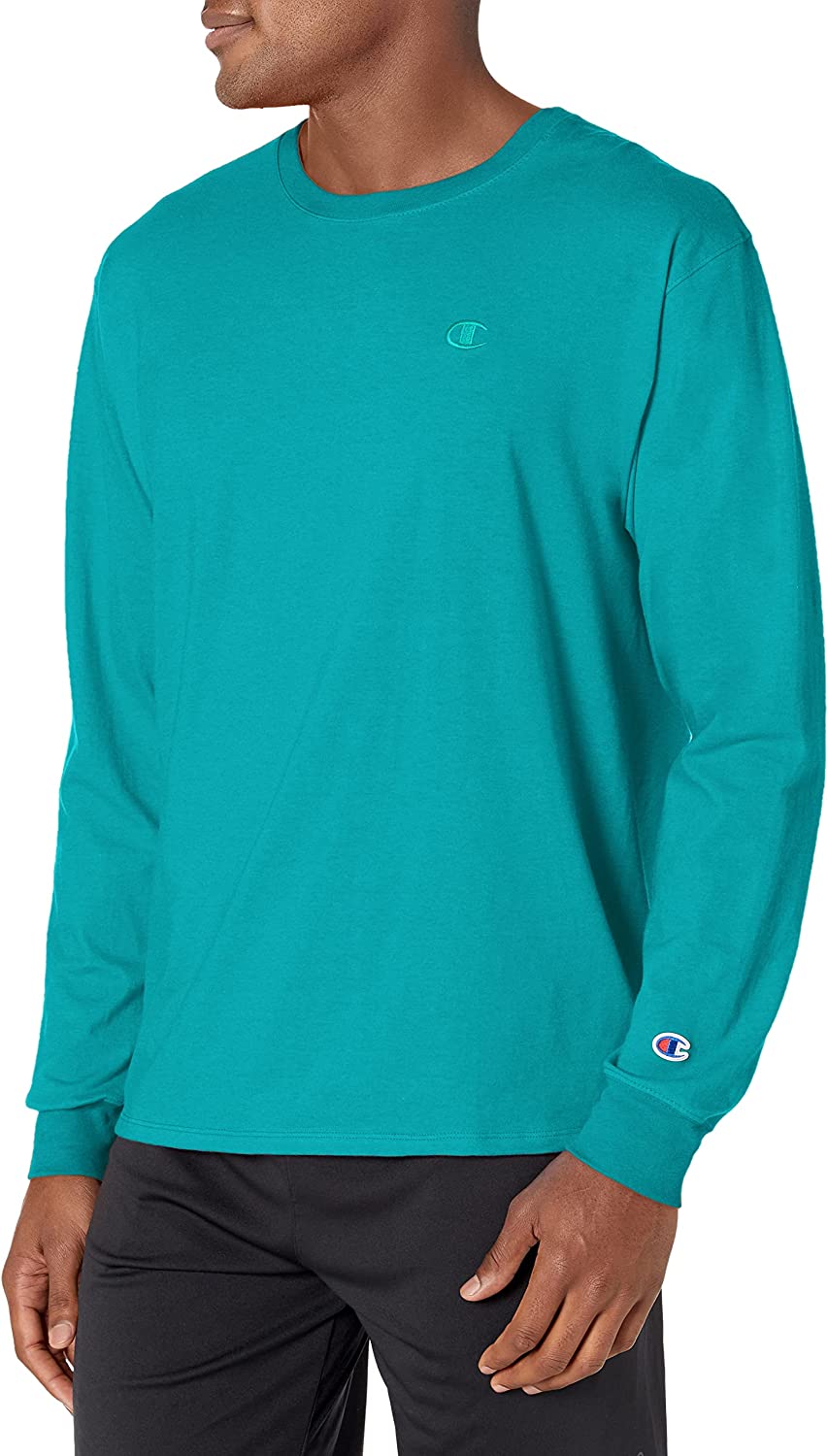 FEEL-GOOD SPORTY STYLE FOR THE CITY. Whether you're on a run or just running errands, our Champion® Long-Sleeve Men’s Tee delivers high-impact comfort with ultra-soft polyester-spandex fabric. Moisture-wicking and odor control help you stay focused for literally whatever the day may bring. This casual men’s long sleeve tee shirt features an easy, standard fit, along with raglan sleeves and stretch fabric to ensure you can move freely for workouts or lazy days at home. The "ready to take on the city" look of this casual men's shirt will easily amp up your sport style and makes it perfect for pairing with your favorite jeans or sweats—so you already know this super comfortable men’s long sleeve tee shirt is going to become the next staple of your everyday closet.