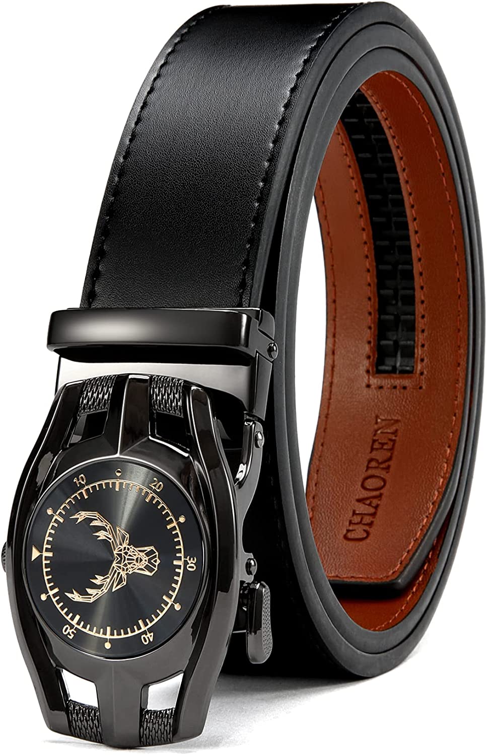 With CHAOREN fashion look eye-catching less expensive belt you will always fit great with both jeans and dress pants. Complemented with heavily sense of mineral polishing buckle and stylish genuine leather straps,you will keep neat look as no holes needy anymore.