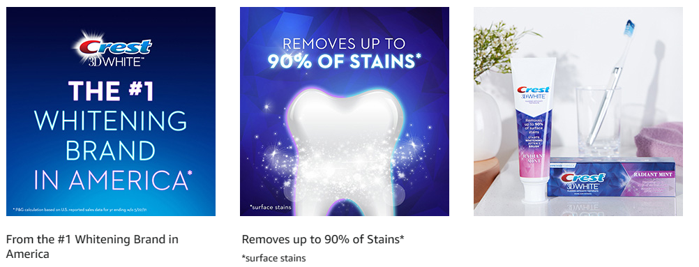 Brighten your smile with Crest 3D White Radiant Mint Whitening Toothpaste. Removes 90% more surface stains*, protects against future stains & starts whitening your teeth after 1 brush. 3D White fluoride toothpaste also strengthens your tooth enamel and helps protect against cavities. Leaves your smile bright and minty fresh. *vs. regular toothpaste