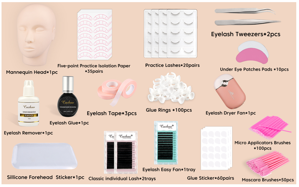 For Beginners--Cuckoo lash extension supplies kit is the best choice for beginners to start learning eyelash extensions or perfect her lash extension techniques.Help you learn lash extensions quickly and easily.
