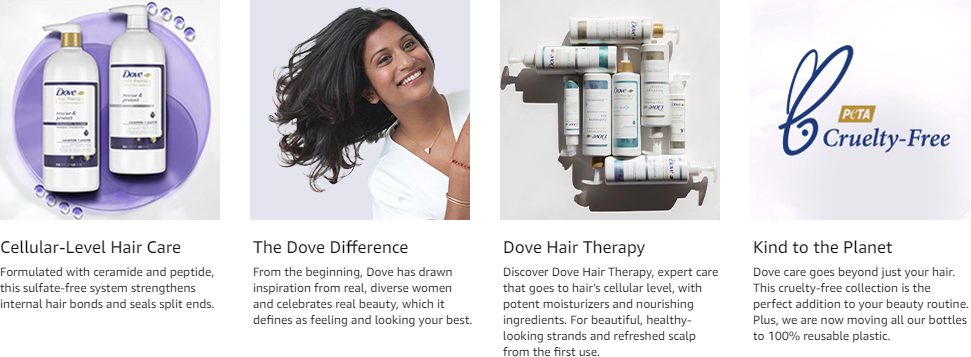Brushing, styling, heat, pollution – your hair goes through a lot. Dove Hair Therapy Rescue and Protect Shampoo gives your hair a little extra TLC that it deserves. Formulated with ceramide and peptide, this hair care shampoo is perfect for over-processed or damaged hair that's prone to breakage and split ends. This sulfate free shampoo is designed as a hair treatment to strengthen internal hair bonds, seal split ends, and protect hair from heat damage and breakage. The Dove Hair Therapy range features potent moisturizers and nourishing ingredients that go to the hair's cellular level* and leave hair feeling beautifully cleansed, smooth and healthy. *nourishes at the level of hair's cortex. How to use: Pump a generous amount of the shampoo, apply to wet hair, lather and rinse. After washing your hair with shampoo, apply our Dove Hair Therapy Rescue and Protect Conditioner + Serum to visibly repair hair damage, gently condition and seal split ends in just 1 minute! Want 2X visibly fuller and thicker hair? Try our Dove Hair Therapy Strength and Fullness Shampoo and Conditioner. For hair with that envious shine, try Dove Hair Therapy Glow and Restore Shampoo and Conditioner. Unilever’s ongoing work on alternatives to animal testing for more than 30 years, and its commitment to promote their adoption globally, has been recognized by PETA, which has listed Unilever as “a company working for regulatory change.” Globally, Dove does not test on animals and is certified by PETA as Cruelty-Free.