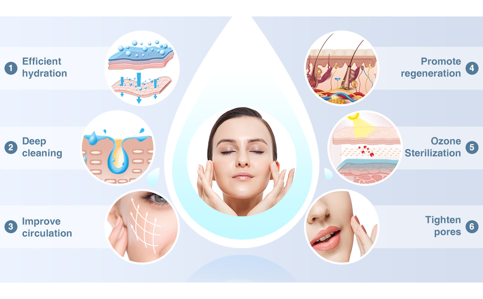 【Ozone atomization function】:Ozone atomization can sterilize, soften the stratum corneum, and promote blood circulation, which is essential for healthy skin.