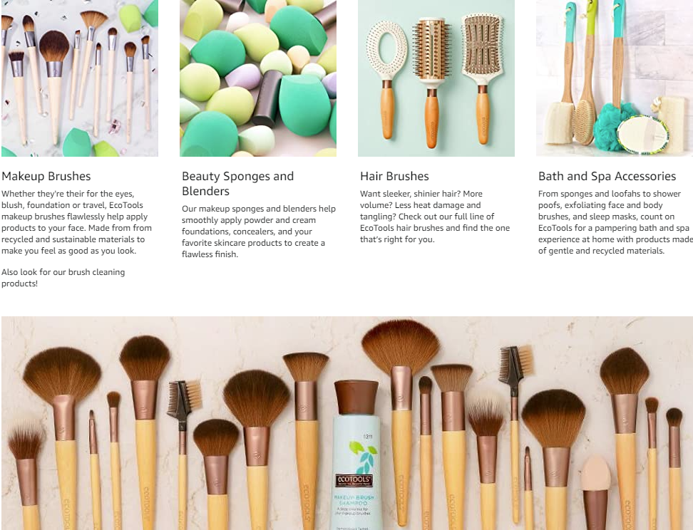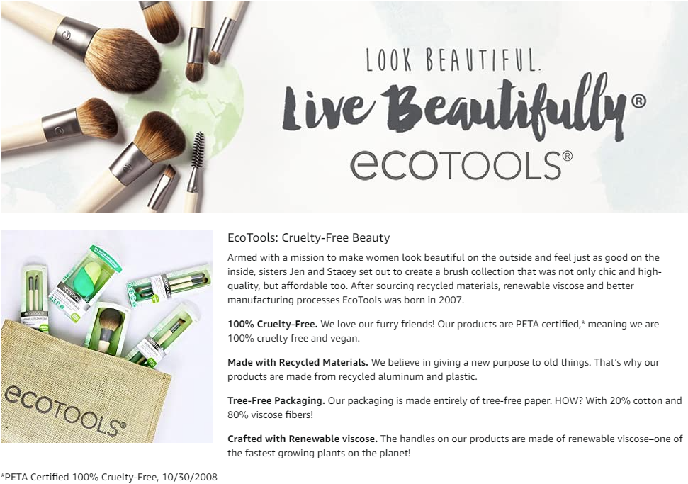 The EcoTools Wonder Cover Complexion Foundation Makeup Brush is designed with 100,000 bristles for full coverage of liquid and cream foundation coverage in less time. With a simple sweep, camouflage common skin issues like rosacea, hyperpigmentation, and blemishes. Designed with a tear shape, this brush helps you to apply makeup in hard-to-reach areas like around the eyes for even coverage. It features super soft bristles that are perfect for sensitive skin and is incredibly easy to use. To start, dab the top of the brush with a small amount of foundation. Gently glide color starting in the middle of the face working outward towards the hairline. Use long and short strokes to cover the entire face and prevent streaks. Try using the brush when wet or dry to play with different looks. For flawless makeup application, every time turn to the EcoTools Wonder Cover Complexion Foundation Makeup Brush. The EcoTools Brushes feature our signature smooth, renewable bamboo handles, synthetic Taklon bristles, and sleek ferrules made with recycled aluminum for a clean beauty experience. Achieve a streak-free look with buildable coverage that is not animal-tested and completely vegan! Whether you use them for the eyes, blush, foundation or to travel with, EcoTools makeup brushes flawlessly help apply products to your face regardless of skin tone and type. Made from recycled and sustainable materials to make you feel as good as you look with a classic flawless application to match. Clean Beauty. Clean Planet. EcoTools has you covered from head-to-toe to keep you and the planet glowing. From exceptional makeup brushes and blenders to crystal face rollers to a variety of practical bath brushes and accessories, our products are not only effective, but they are also vegan-friendly and cruelty-free. The Delicate Ecopouf made with recycled netting, turns any bath into a spa experience while makeup brush sets like the Start the Day Beautiful Kit help achieve a natural makeup look. EcoTools is the perfect addition to any beauty routine.