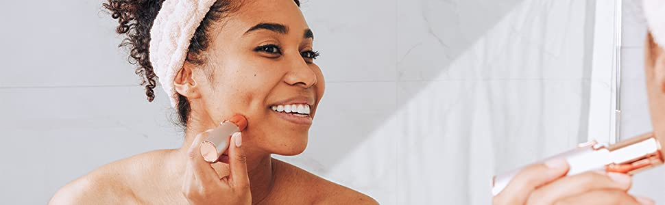 Finishing Touch Flawless Women's Painless Hair Remover. Remove Flawless cap, slide the switch located on the side of the unit upward into the "ON" position. The light will automatically turn on when the unit is "ON". Gently press the head of the unit flat against your skin. The unit should not be on an angle. Precede making small circular motions to remove unwanted hair. Note: It is normal for the head to become warm with use. The secret is a revolutionary Butterfly Technology that erases hair by microscopically paring it down through a spinning head. Neatly and discreetly housed under the 18 karat gold-plated head, the Butterfly Technology never touches delicate facial skin. For superior results, use on hair 1/4 inches in length or less.