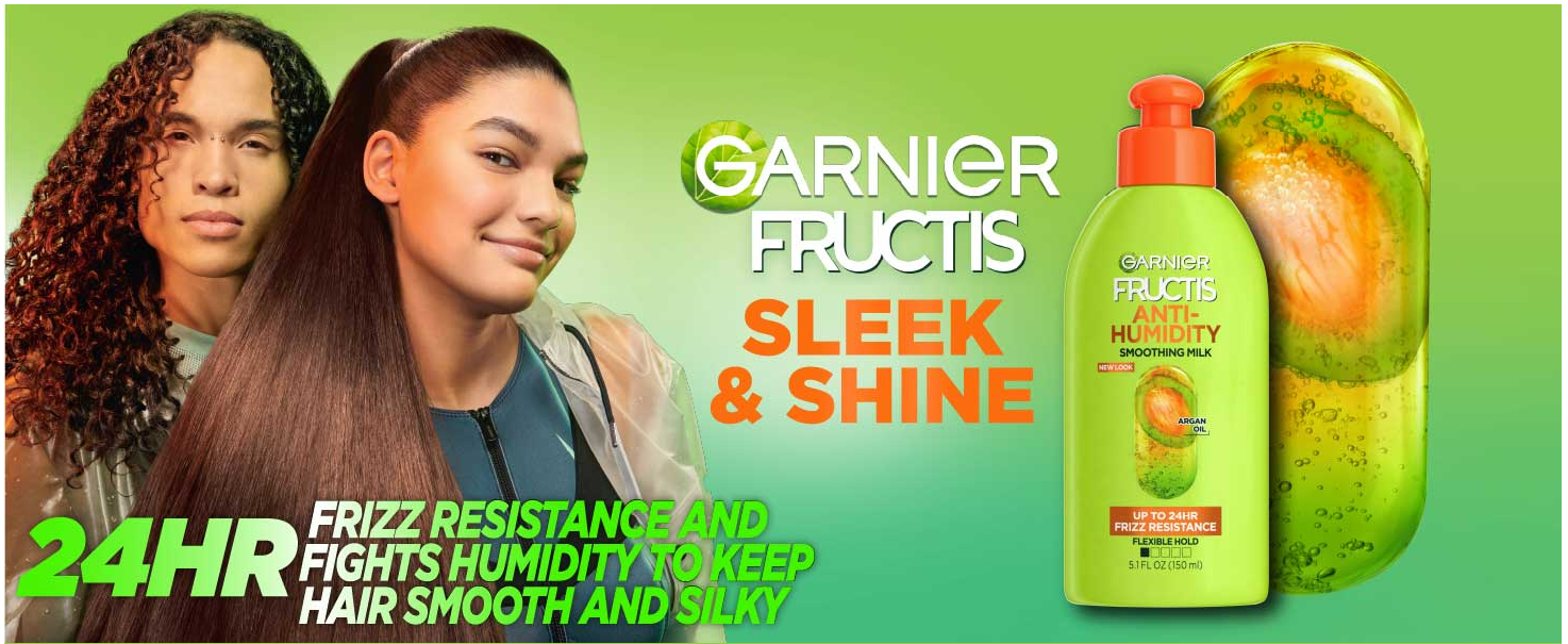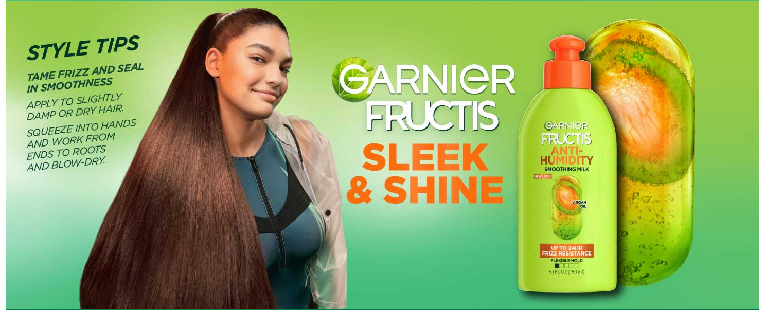 Get 24 hour sleek! Garner Fructose Style Anti-Humidity Smoothing Milk tames frizz and fights humidity to keep hair smooth and silky. HOW DOES IT WORK? This powerful paraben-free smoothing milk, with Argon Oil from Morocco, fights humidity and combats frizz to smooth and tame unruly hair without weighing it down. 24 hour frizz resistance and smooth hair! GET INSPIRED! Get a "Smooth Operator" look: Apply on slightly damp hair from ends to roots. Blow-dry with a round brush for a sleek, smooth look. Or apply anytime, anywhere to dry hair to tame frizz and flyaway. For more looks, tips and fun visit our Style Hub.