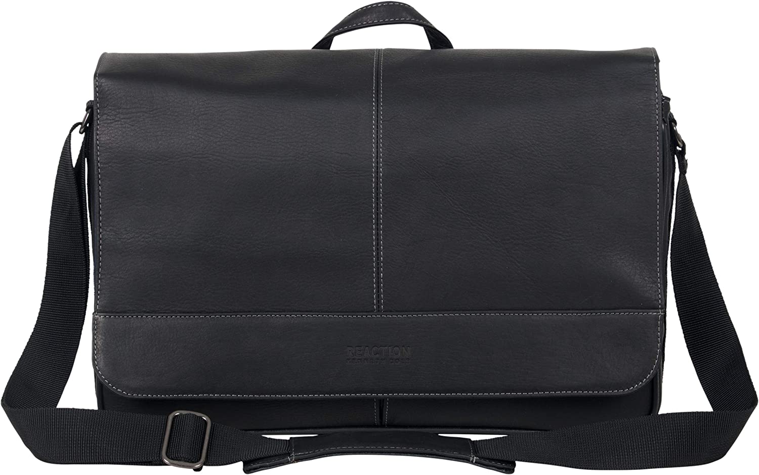 Carry your mobile office essentials comfortably and stylishly in the Kenneth Cole Reaction "Come Bag Soon" Full-Grain Colombian leather 15.6" Laptop messenger bag from the Kenneth Cole 'Manhattan' Collection. This soft, smooth, supple, and luxurious full-grain, cowhide Colombian leather bag features a classic messenger styling with contrast stitching. The rear features a magnetic snap closure for accessing frequently needed items, and its fully-lined interior boasts a padded laptop computer compartment, a padded tablet pocket, a full-length zip pocket, and plenty of room for your files. Open pockets under its flap include a cell phone pocket, an anti-theft RFID Pocket, pen sleeves, and card slots. Its open-back pocket Also offers further storage space. This Colombian leather laptop messenger bag comes with a padded, adjustable shoulder strap that extends 60 inches for your carrying comfort. Classic styling accompanies your everyday life, and all colors pair perfectly with your daily wardrobe, from work to weekends. The perfect business-savvy, Colombian leather, 15.6" Laptop messenger bag for travelers and professionals whom value both style and function. ★ Backed by a manufacturer lifetime limited warranty against defects. ★ Overall size: 16" W x 12" H x 3" D. ★ Computer Compartment Dimensions: 15" W x 10" H x 1.5" D. ★ Product Weight: 2.4 lbs. ★