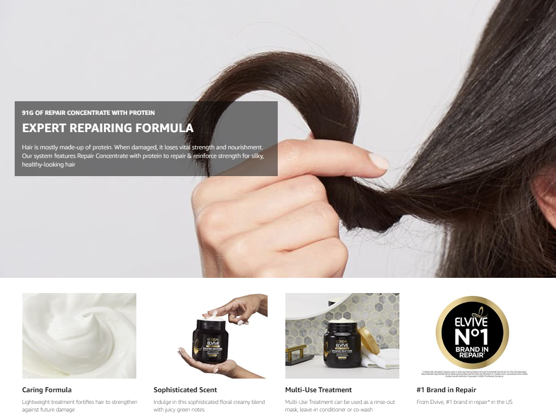 "Hair that's worth it, is worth repairing. L'Oreal Paris Elvive Total Repair 5 strengthening system of shampoo, conditioner, and treatments fights the 5 signs of damage: weak, fried, brittle, tangled, and split-ends. Total Repair 5 Repairing Shampoo repairs damaged hair without the weigh down, Total Repair 5 Repairing Conditioner creates a perfect synergy with the Repairing Shampoo combining intense care with lightness, Total Repair 5 Power Restore Multi-Use Treatment acts as a leave-in conditioner, rinse-out mask, and co-wash helping fortify hair to strengthen against future damage, Total Repair 5 Damage Erasing Balm rinse-out mask deeply conditions and reinforces hair, and Total Repair 5 Protein Recharge leave-in conditioner helps recharge strength and protect against up to up to 450° heat.*Total grams of repair concentrate per jar*"