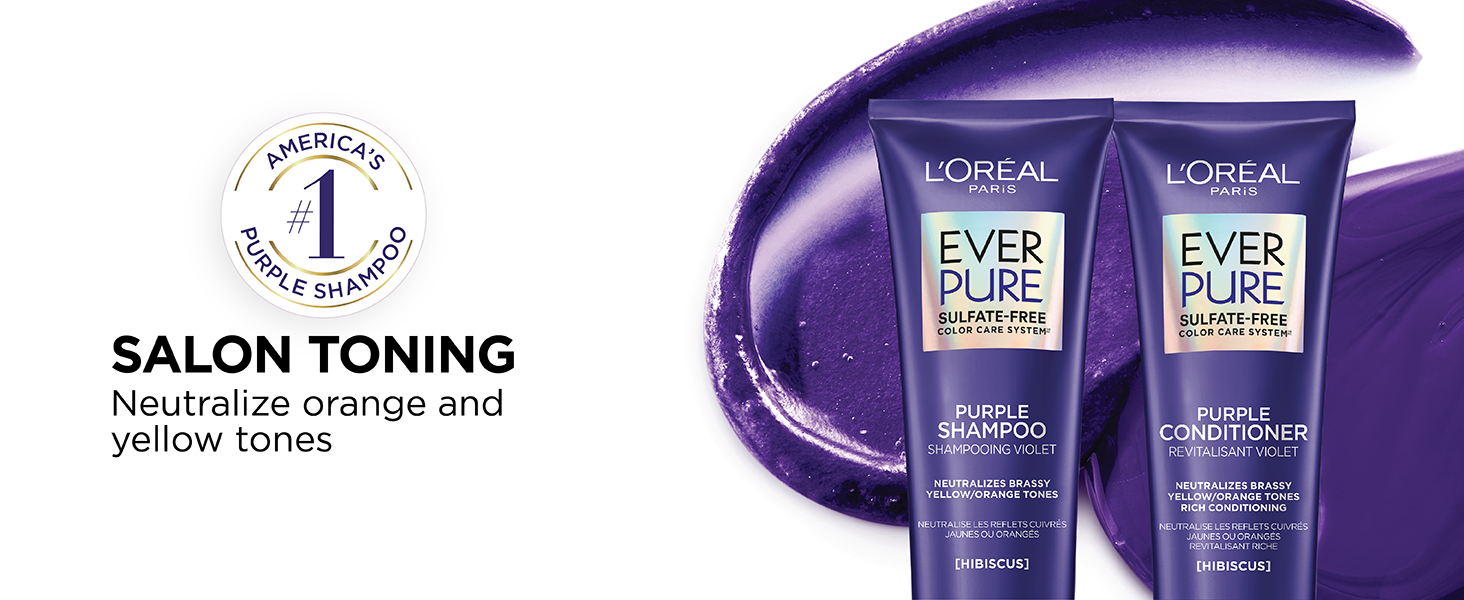 Say no to brassy hair! Your beautiful blonde colored, bleached or highlighted hair can turn brassy over time. Take charge at the First Sign of brass! Our ever Pure sulfate free ultra-pigmented anti-brass purple hair mask with hibiscus neutralizes stubborn brass and deeply nourishes hair for the ultimate blonde reset in just 5 minutes. Formulated with even more toning pigments than our purple shampoo. Best for blonde colored, bleached and highlighted hair. Blonde color-treated hair requires special care. Our formula is 100% Sulfate Free and suitable for color treated hair. Experience a creamy texture, easy application, and results in just 5 minutes! Our sulfate free formula is also paraben free and formulated with vegan ingredients. Pair with our ever Pure purple shampoo. No animal derived ingredients or by-products.