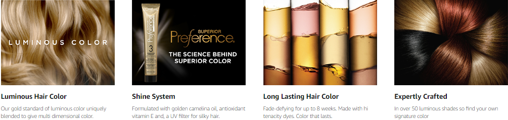 Since 1973, L’Oreal Superior Preference has been our gold standard in permanent hair color – delivering extraordinary shine and luminous hair color that lasts and lasts. What makes Superior Preference hair color so special is our unique Fade-Defying Color and Shine System that pairs our translucent gel formula with our famous Care Supreme Conditioning treatment. The end result is beautifully crafted, long lasting hair color with depth and dimension. Available in over 50 luminous shades so you can find your own signature color.