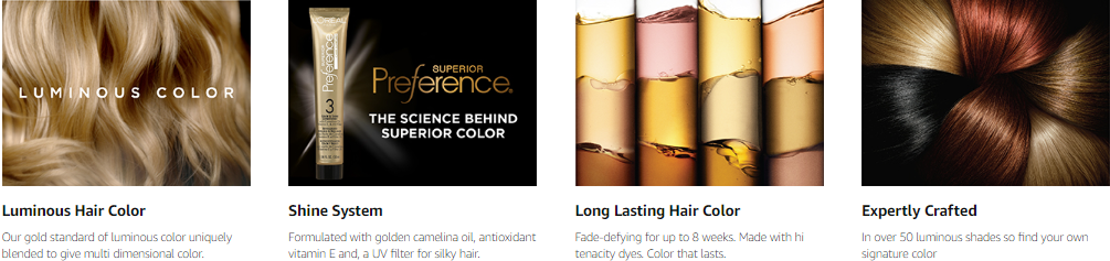 Since 1973, L’Oreal Superior Preference has been our gold standard in permanent hair color – delivering extraordinary shine and luminous hair color that lasts and lasts. What makes Superior Preference hair color so special is our unique Fade-Defying Color and Shine System that pairs our translucent gel formula with our famous Care Supreme Conditioning treatment. The end result is beautifully crafted, long lasting hair color with depth and dimension. Available in over 50 luminous shades so you can find your own signature color.