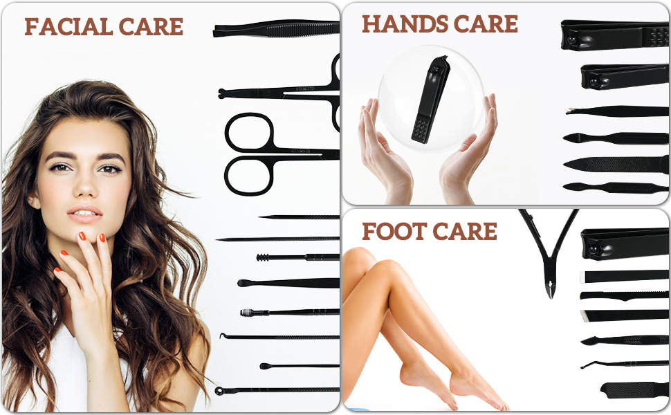 Manicure Set:professional manicure kit contains 26 tools,multifunctiona include hand care,facial care,foot care tools.