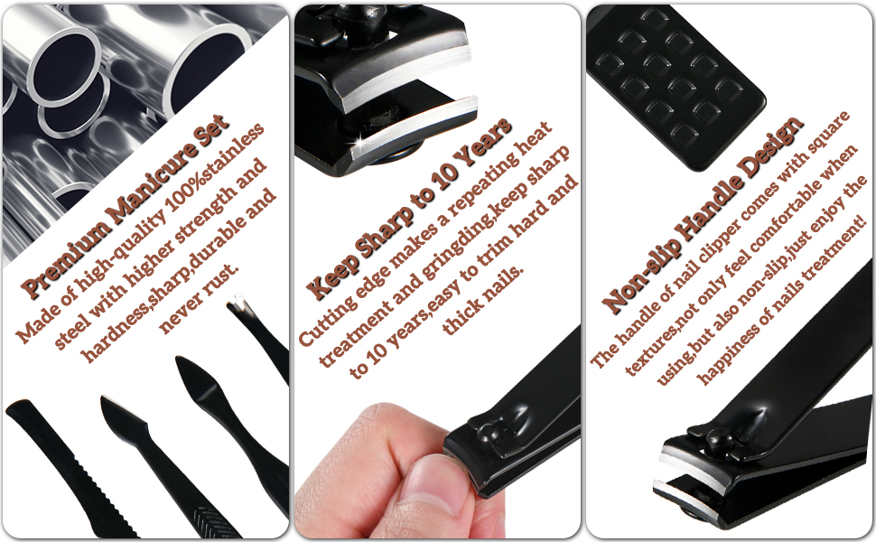 Nail Clippers Made Of Top Quality Steel:our stainless steel nail tools are made of high quality steel, which is strong and durable, extremely hard and sharp.