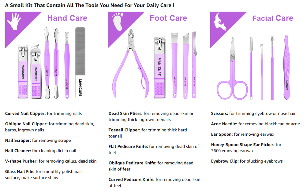 MULTI FUNCTIONAL: Our manicure set covers your daily needs for hand care, foot care and facial care. You don't need to buy nail clippers, scissors, tweezers or files separately online or in the supermarket, just buy our pedicure set and get 16 pcs very practical beauty tools. Save you a lot of money!