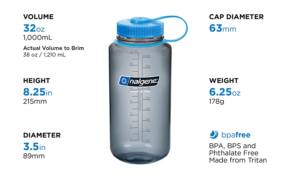 | Model Name | Nalgene Tritan Wide Mouth Bottle with Gray Cap, 32 oz, Cosmo |