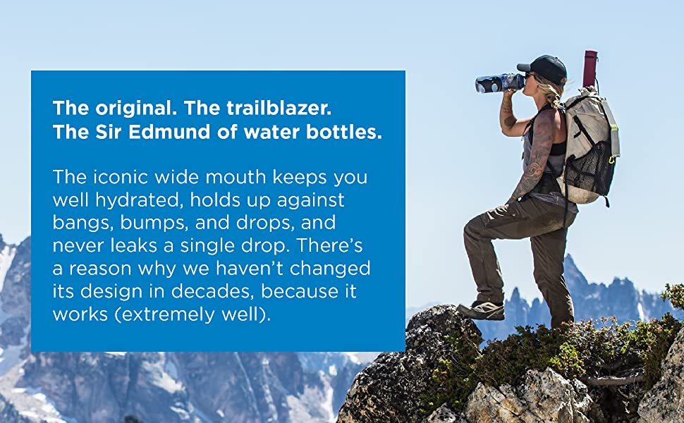 Nalgene's newest leak-proof loop-top swings open wide to reveal a contoured, high-low drinking spout that's easy to fill at the fountain or sink. One-handed push button for easy open/close; locking bail for ultimate insurance against leaks.