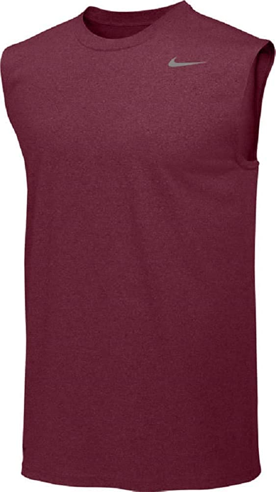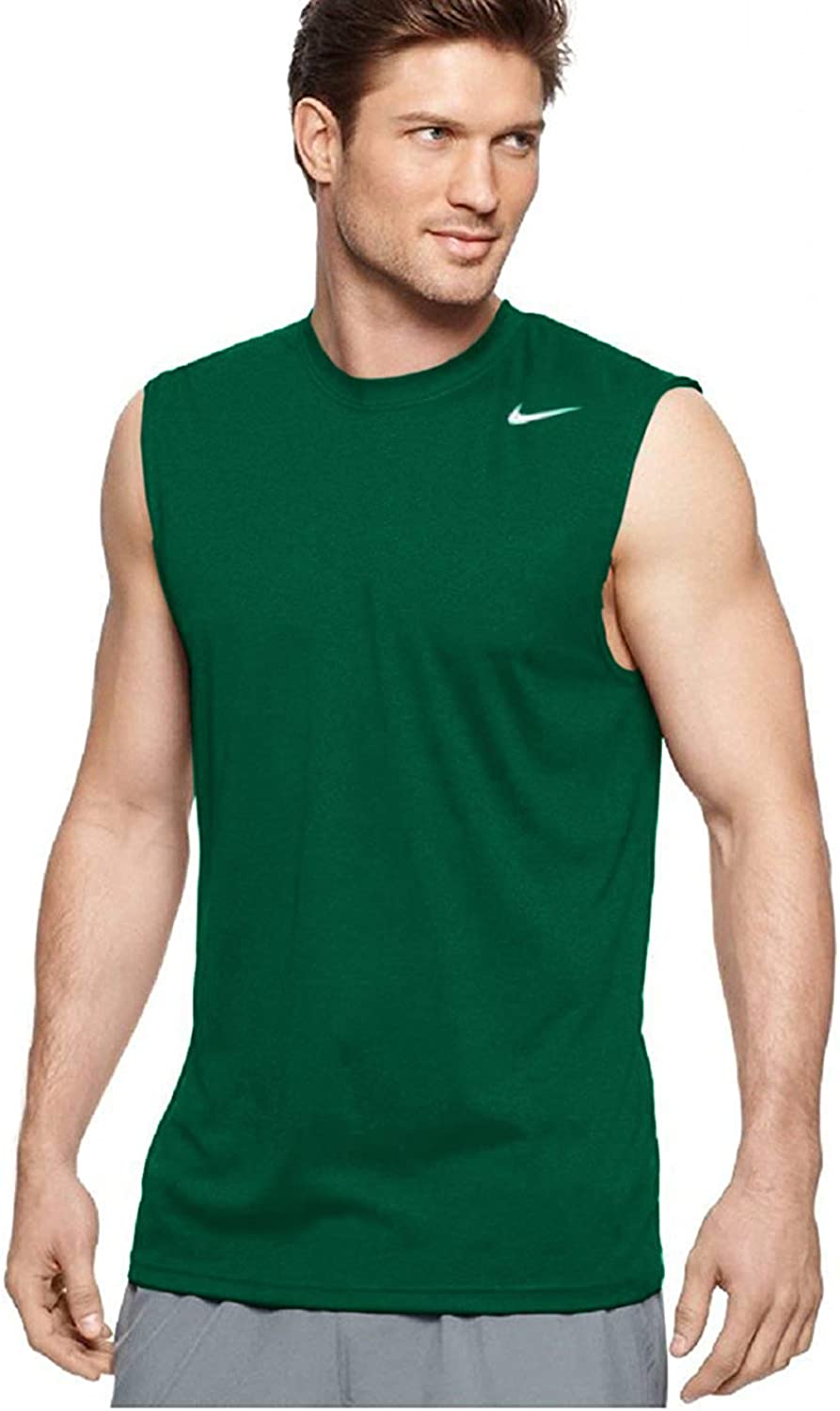 The Nike Legend Men's Sleeveless Poly Top is a versatile men's Dri-FIT top that features a basic, sleeveless design and moisture management properties to keep athletes comfortable during extended training sessions or activities. Nike's Dri-FIT moisture management technology helps transport moisture away from the body to the outer layer of the top, keeping the body cool and dry during intense action. The sleeveless construction of the Nike Legend Sleeveless Poly Top is ideal for a wide variety of training conditions, and allows for greater range of motion. Its 100% polyester makeup allows the Legend Sleeveless Poly Top to remain wrinkle-free and improves its ability to efficiently transport moisture away from the body. Nike has also included a neck tape for added durability and comfort. Nike Swoosh trademark is also located on upper left chest. 100% polyester.