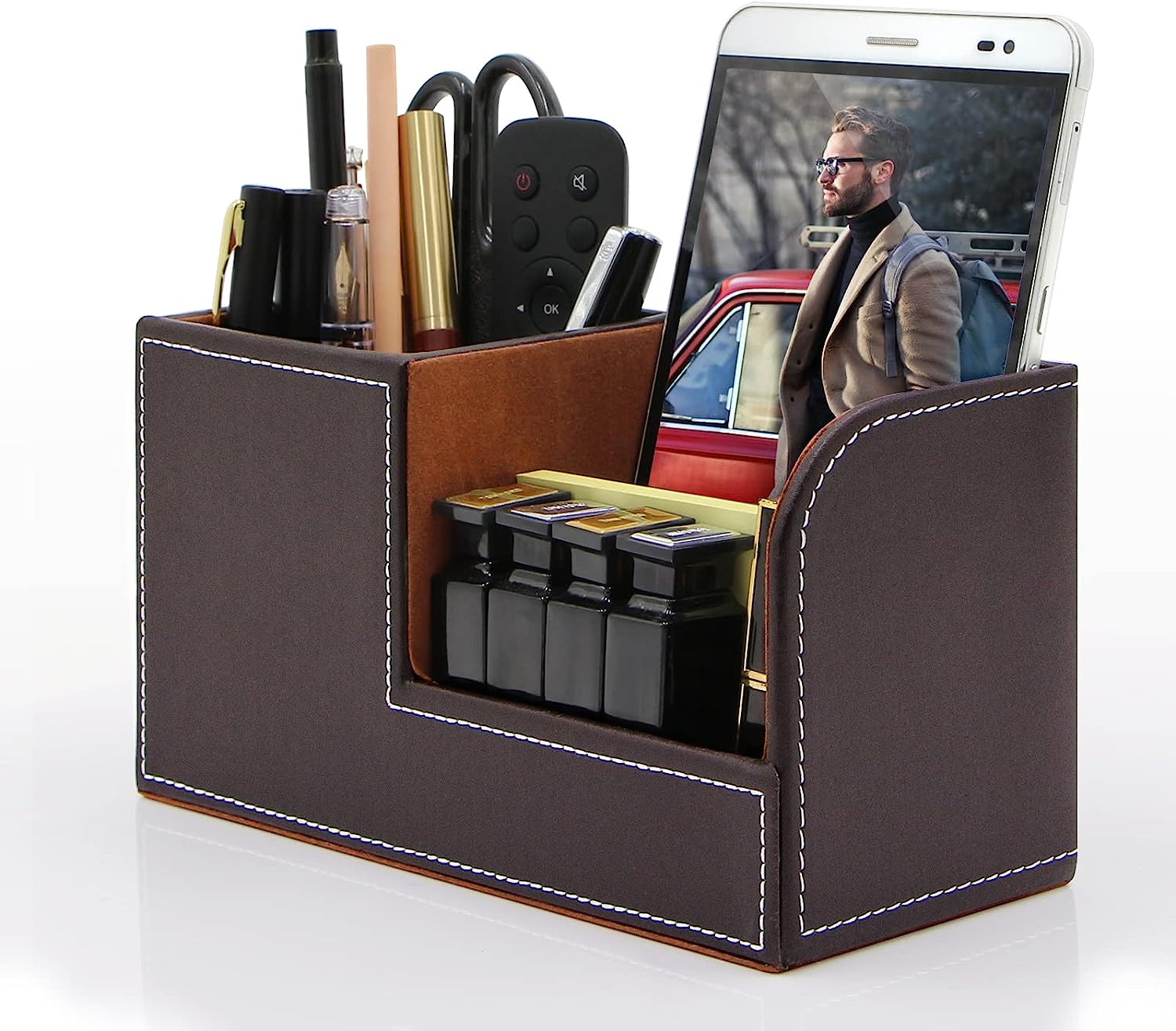 TooCust Leather Office Desk Organizer with Drawer, Multi-function Office Supplies for Desk Top Organizer,Black Mens Desk Accessories,Teacher Desk Organizer for Pen Pencil Holders and Organizers