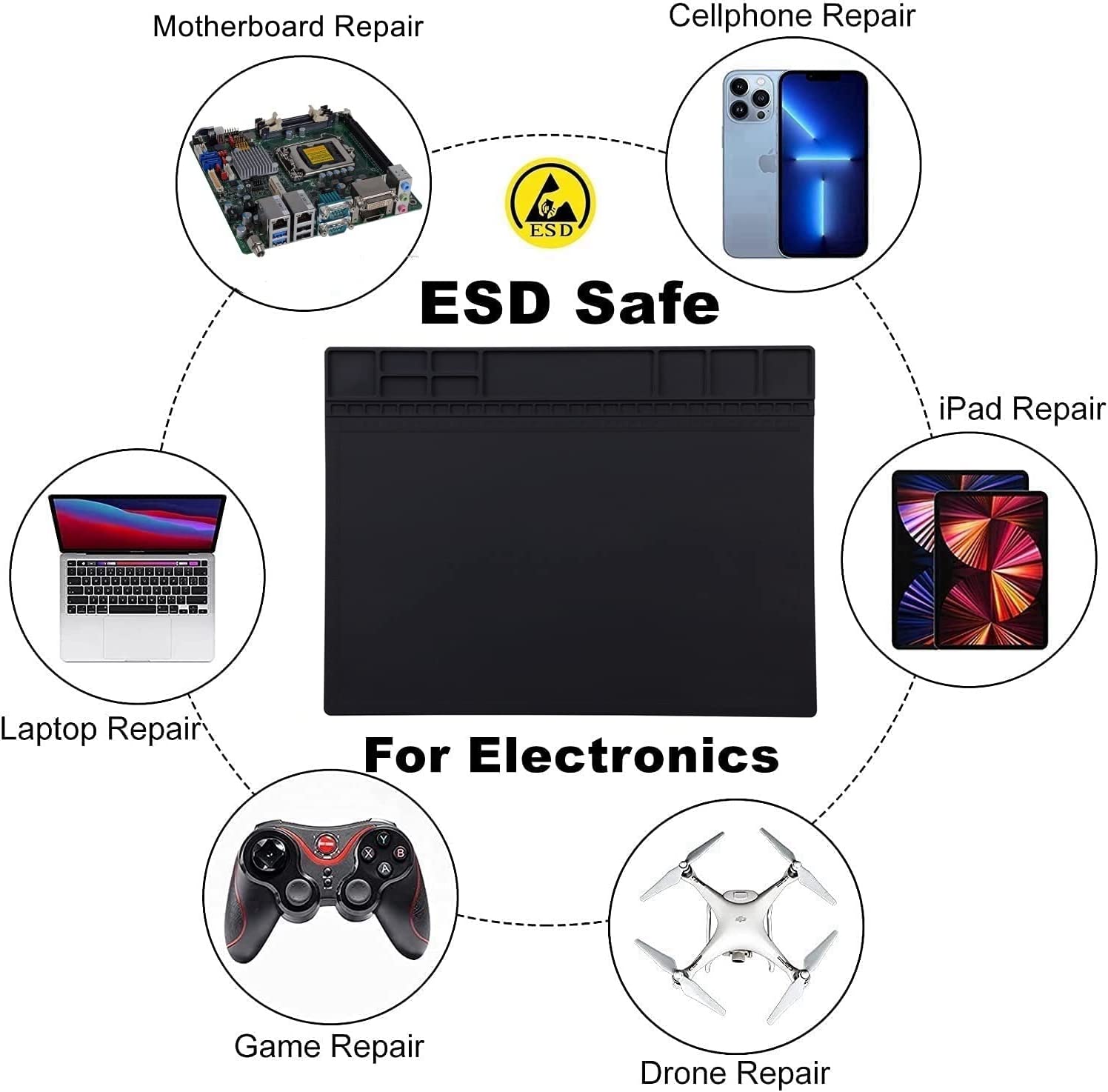 Anti Static Mat, HPFIX ESD Mat Heat Resistant with Grounding Wire, Grounding Plug, and ESD Wristband, Silicone Repair Mat for Computer, PC Building, Eelectronics