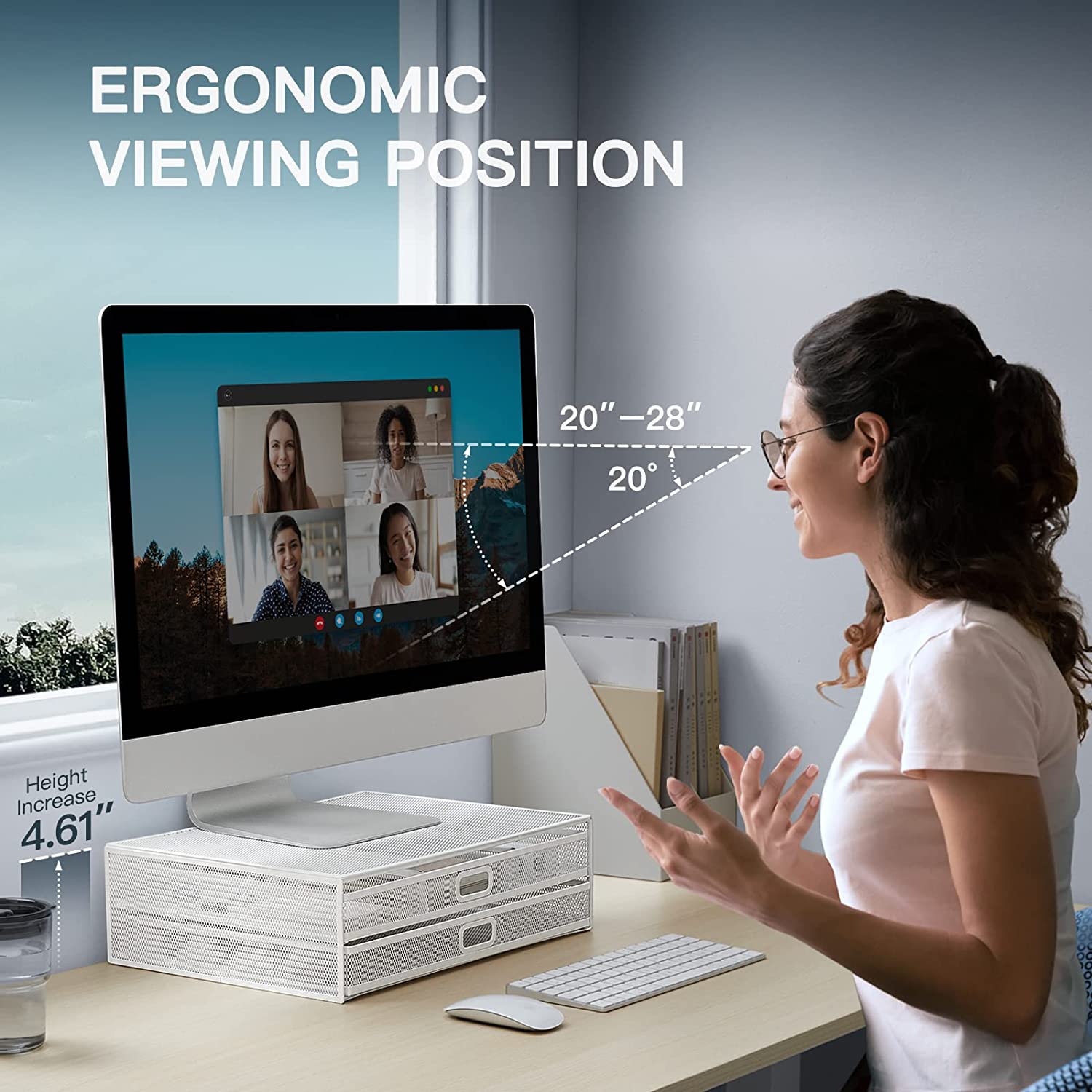 Monitor Stand with Drawer, Monitor Stand, Monitor Riser Mesh Metal, Desk Organizer, Monitor Stand with Storage, Desktop Computer Stand for PC, Laptop, Printer - HUANUO