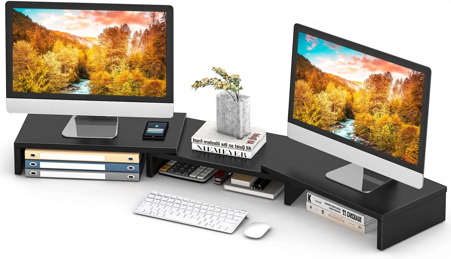 5Rcom Dual Monitor Stand, Desk Accessories with Adjustable Length and Angle, Computer Monitor Stand for PC, Tablet, Laptop, Printer, Monitor Stand Riser, Desk Shelf (Black)
