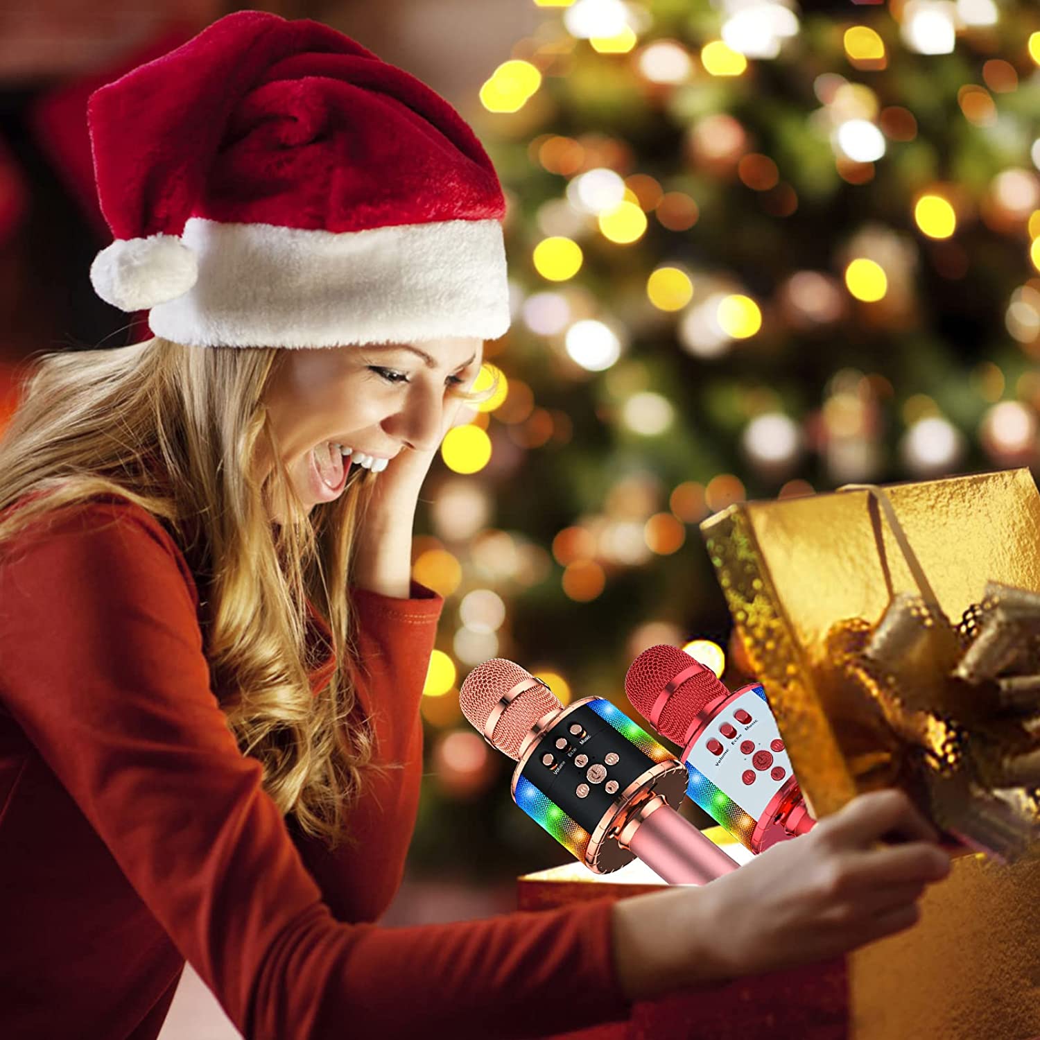 BONAOK Wireless Bluetooth Karaoke Microphone with Controllable LED Lights, 4-in-1 Portable Handheld Mic Speaker for All Smartphones, Birthday for Kids Adults All Age Q78 (Rose Gold)