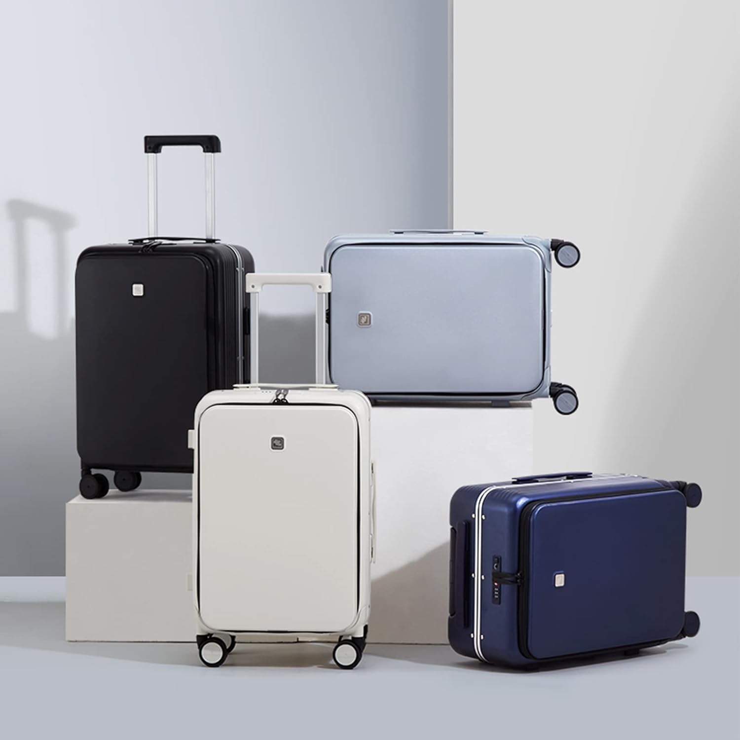 Hanke Upgrade 24" Checked In Suitcase with Front Laptop Pocket, Rolling Luggage with Spinner Wheels and TSA Lock,Aluminum Frame PC Hardside Travel Luggage for woman man, 24-inch Smoke White