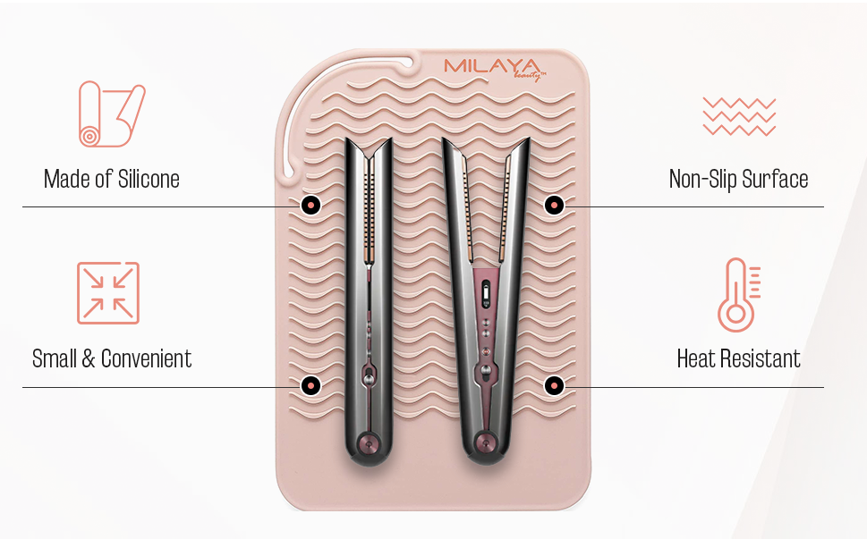 LARGE SIZE & DURABILITY - The mat size has been conveniently resized larger 7.5 inch x 11 inch compared to our competition of 6 inch x 9 inch. It provides more space for multiple hot tools. Convenient design keeps hair styling tools from slipping and falling while the mat grips on the surface. Easy to clean. Wash with mild soap and warm water. Air dry.