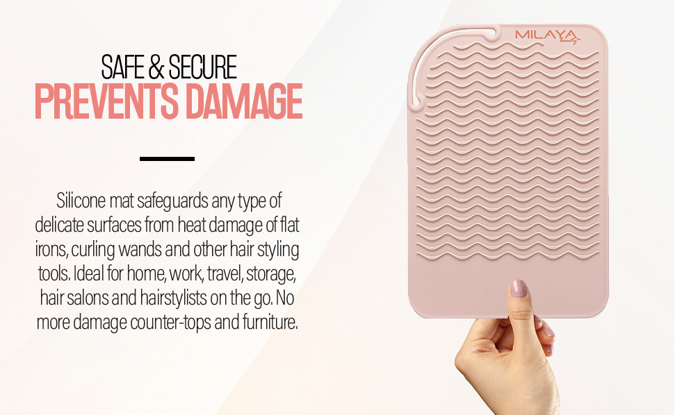 SURFACE PROTECTION - Silicone mat safeguards any type of delicate surfaces from heat damage of flat irons, curling wands and other hair styling tools. Ideal for home, work, travel, storage, hair salons and hairstylists on the go. No more damage counter-tops and furniture.