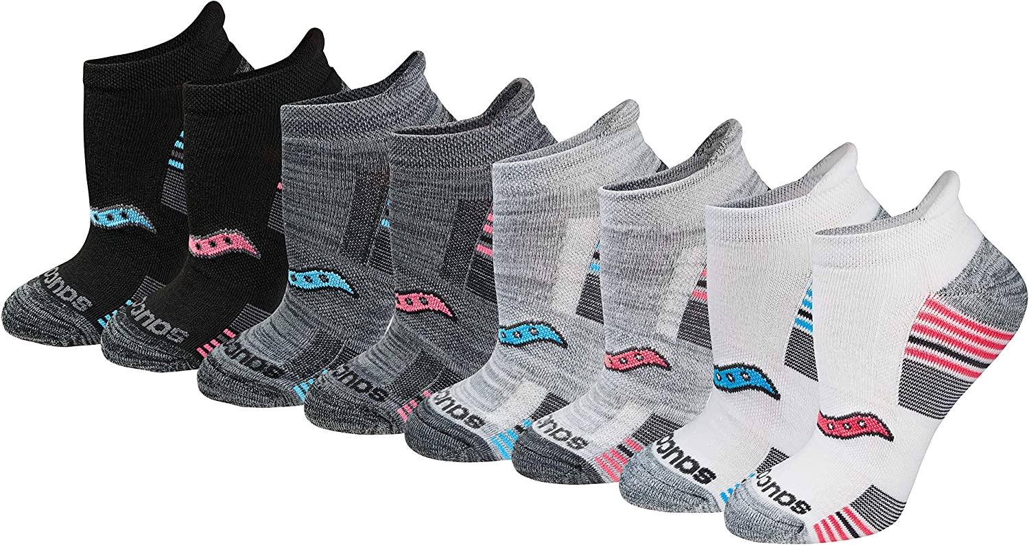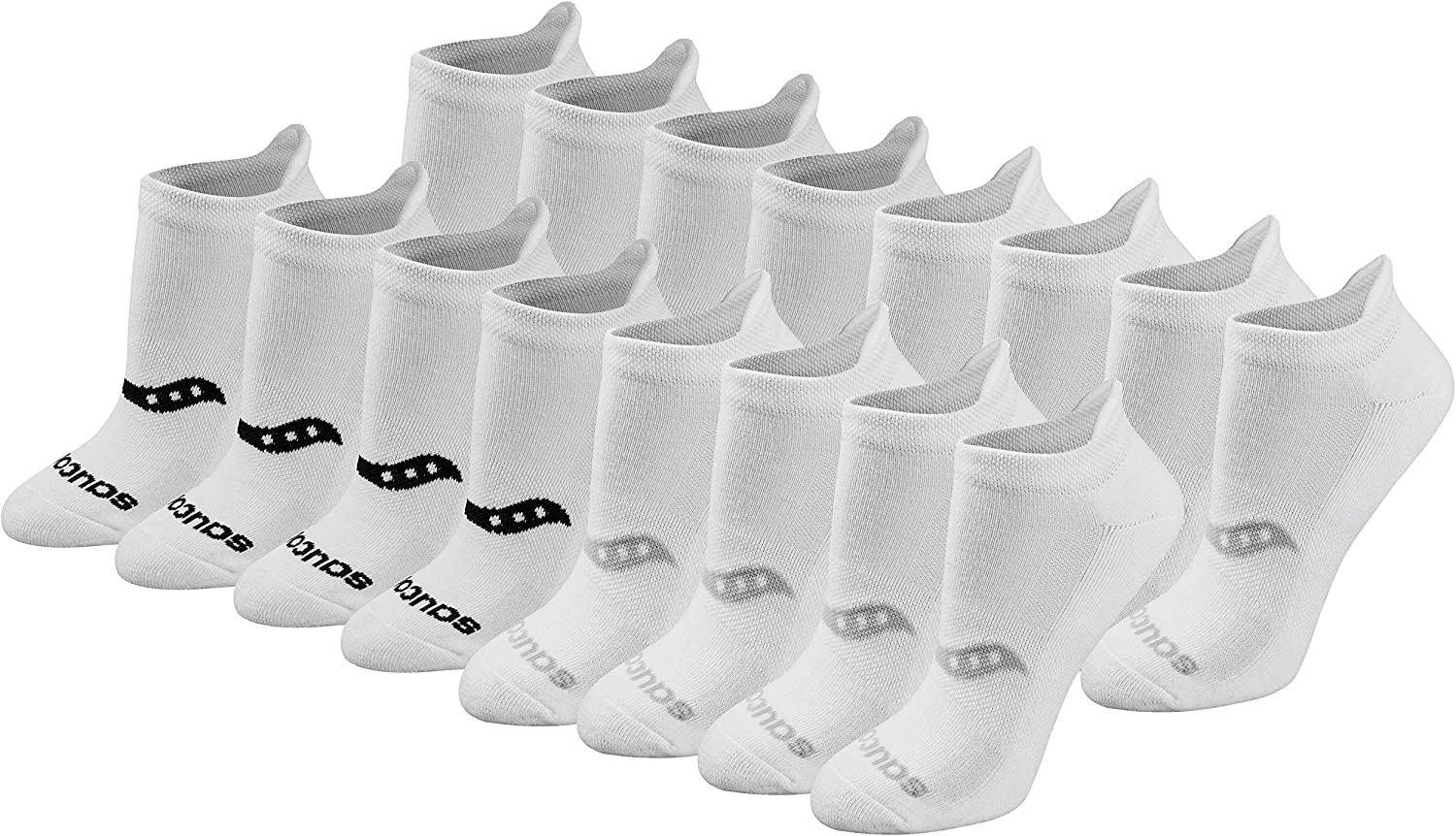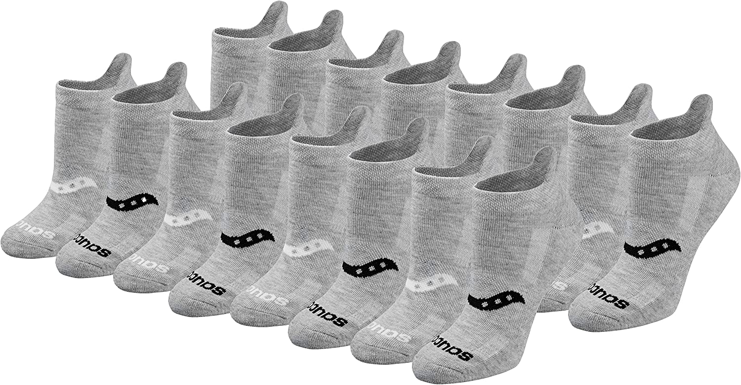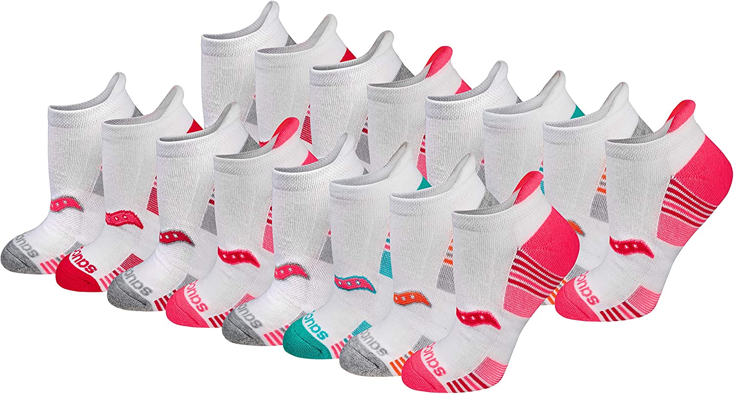 Saucony women's performance Heel tab athletic socks are a perfect combination of comfort and support. Great for the toughest training sessions. Features include heel tab design for added protection and comfort, rundry moisture management helps keep feet dry, arch support for an improved and secure fit, Mesh ventilation that enhances breathability and comfort, targeted zone cushioning in high impact areas for added comfort, and comfort toe seam for reduced irration.