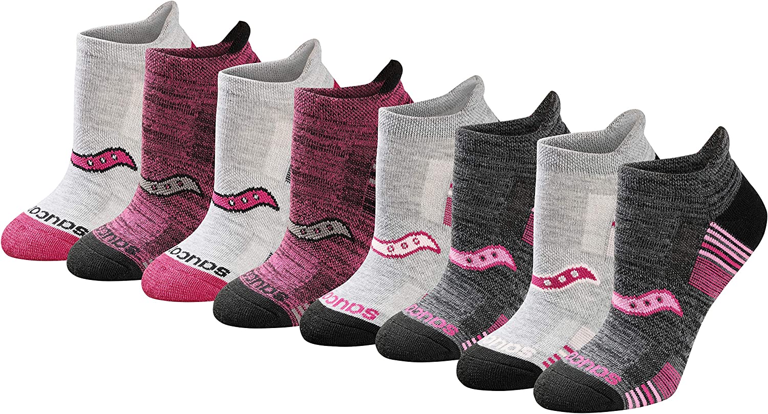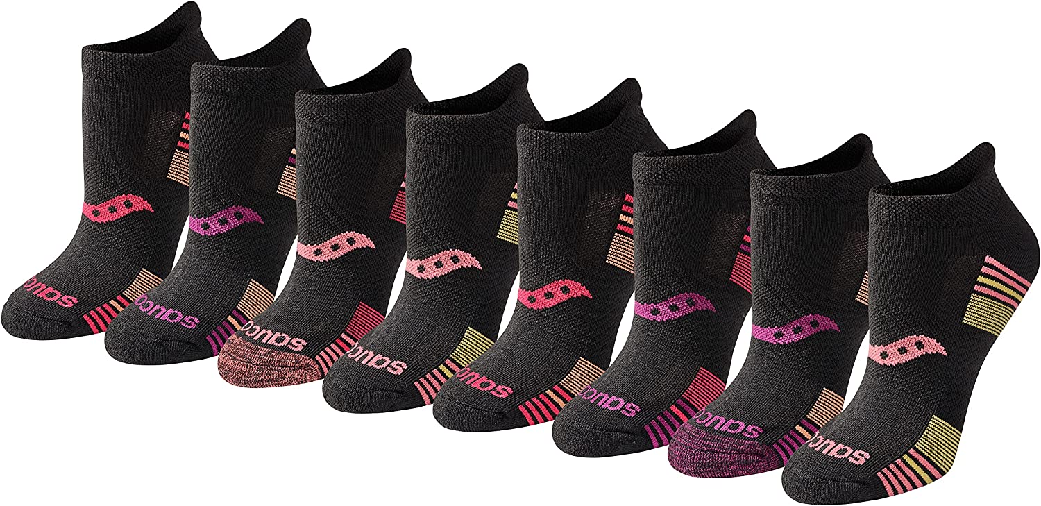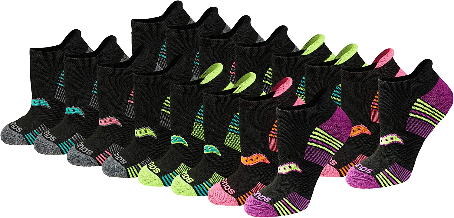 Saucony women's performance Heel tab athletic socks are a perfect combination of comfort and support. Great for the toughest training sessions. Features include heel tab design for added protection and comfort, rundry moisture management helps keep feet dry, arch support for an improved and secure fit, Mesh ventilation that enhances breathability and comfort, targeted zone cushioning in high impact areas for added comfort, and comfort toe seam for reduced irration.