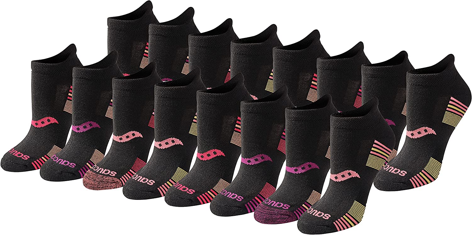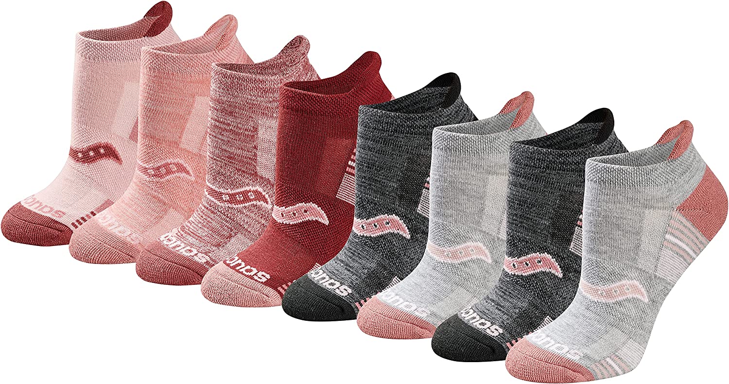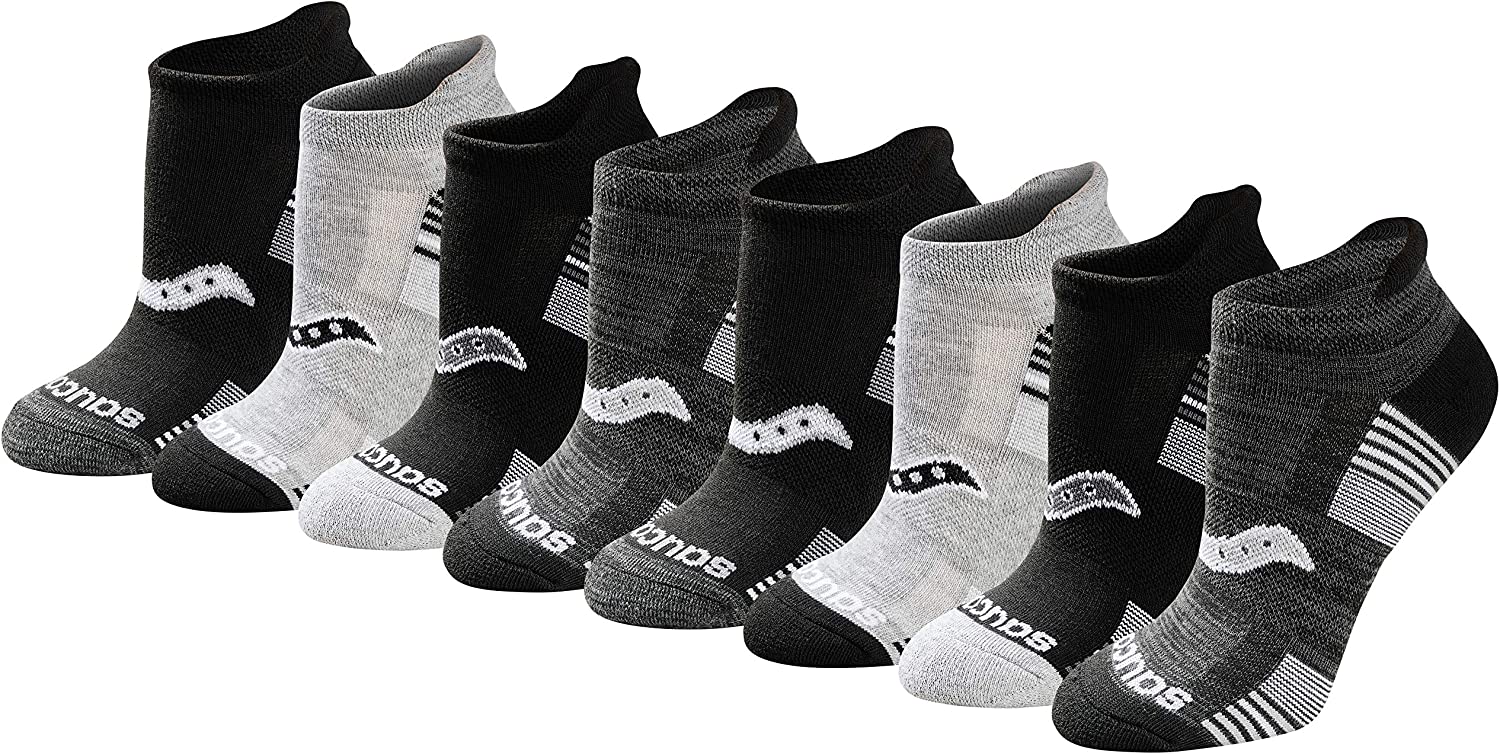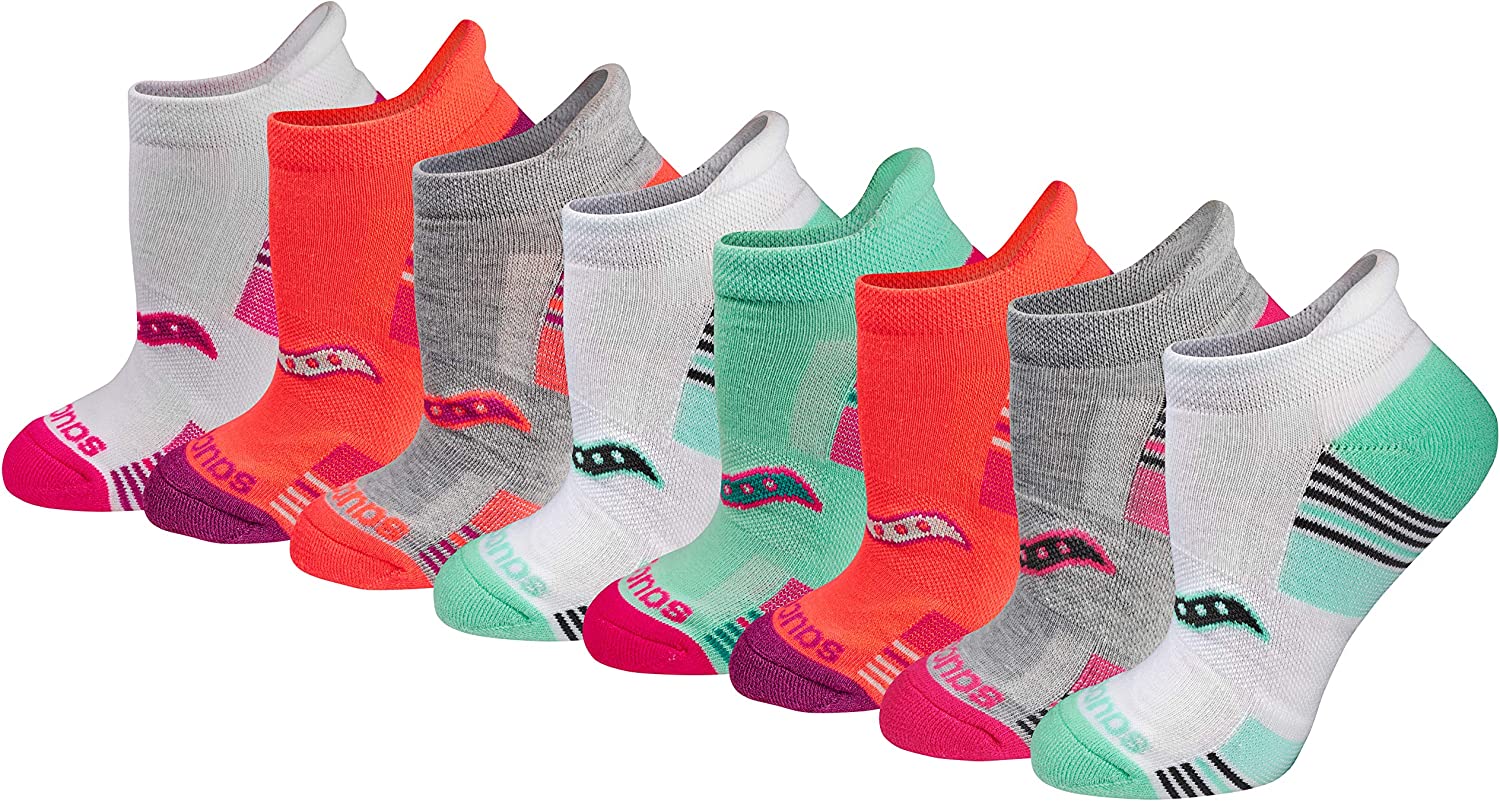 Saucony women's performance Heel tab athletic socks are a perfect combination of comfort and support. Great for the toughest training sessions. Features include heel tab design for added protection and comfort, rundry moisture management helps keep feet dry, arch support for an improved and secure fit, Mesh ventilation that enhances breathability and comfort, targeted zone cushioning in high impact areas for added comfort, and comfort toe seam for reduced irration.