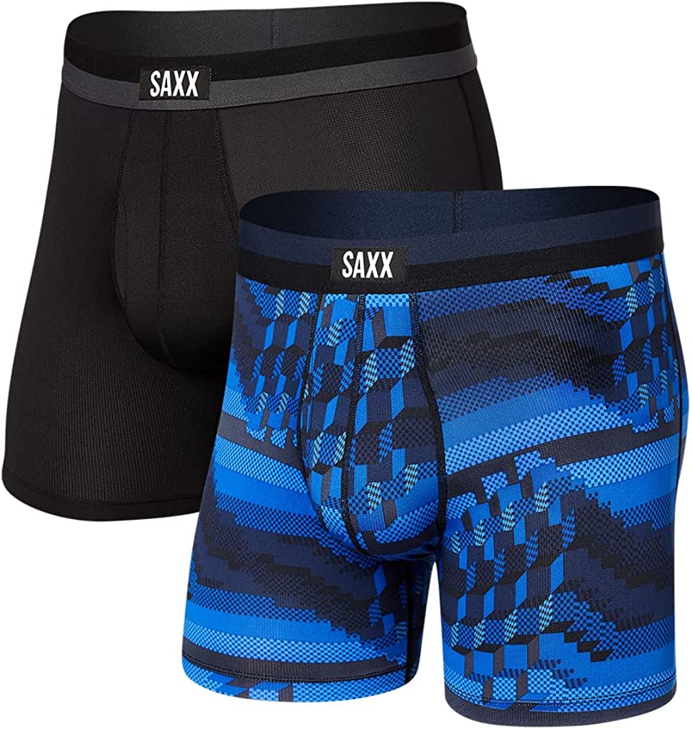 Saxx Underwear Men's Boxer Briefs – Sport MESH Men’s Underwear – Boxer Briefs with Built-in Ballpark Pouch Support – Workout Boxer Briefs, Pack of 2, Navy/City Blue, Small