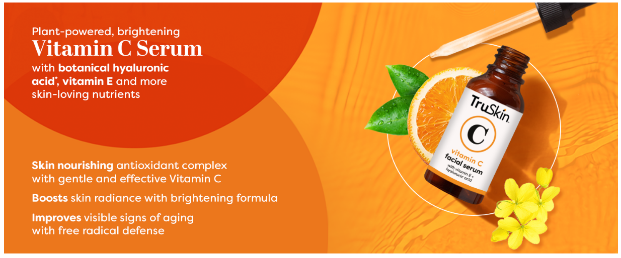 The aging process naturally diminishes moisture, collagen and crucial skin nutrients, leaving skin dry, wrinkled and blemished. TruSkin Vitamin C Serum is precision-designed to revitalize aging skin, providing the key nutrients needed to restore skin’s beautiful, youthful appearance. Apply 3-5 drops to face and neck once daily. For use on the delicate eye area, apply 1-2 drops to fingertips and gently apply to skin around the eyes once daily to target mild undereye puffiness and dark circles.